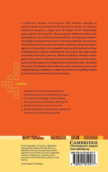 In Modernism, Narrative and Humanism, Paul Sheehan attempts to redefine modernist narrative for the twenty-first century. For Sheehan modernism presents a major form of critique of the fundamental presumptions of humanism. By pairing key modernist writers with philosophical critics of the humanist tradition, he shows how modernists sought to discover humanism's inhuman potential. He examines the development of narrative during the modernist period and sets it against, among others, the nineteenth-century philosophical writings of Schopenhauer , Darwin and Nietzsche. Focusing on the major novels and poetics of Conrad, Lawrence, Woolf and Beckett, Sheehan investigates these writers' mistrust of humanist orthodoxy and their consequent transformations and disfigurations of narrative order. He reveals the crucial link between the modernist novel's narrative concerns and its philosophical orientation in a book that will be of compelling interest to scholars of modernism and literary theory.