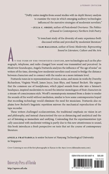 At the turn of the twentieth century, new technologies such as the phonograph, telephone, and radio changed how sound was transmitted and perceived. In Modernist Soundscapes, Angela Frattarola analyzes the influence of "the age of noise" on writers of the time, showing how modernist novelists used sound to bridge the distance between characters and to connect with the reader on a more intimate level.