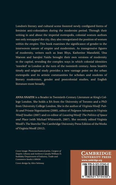London's literary and cultural scene fostered newly configured forms of feminist anticolonialism during the modernist period. Through their writing in and about the imperial metropolis, colonial women authors not only remapped the city, they also renegotiated the position of women within the empire. This book examines the significance of gender to the interwoven nature of empire and modernism. As transgressive figures of modernity, writers such as Jean Rhys, Katherine Mansfield, Una Marson and Sarojini Naidu brought their own versions of modernity to the capital, revealing the complex ways in which colonial identities 'traveled' to London at the turn of the twentieth century. Anna Snaith's original study provides an alternative vantage point on the urban metropolis and its artistic communities for scholars and students of literary modernism, gender and postcolonial studies, and English literature more broadly.