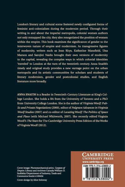 London's literary and cultural scene fostered newly configured forms of feminist anticolonialism during the modernist period. Through their writing in and about the imperial metropolis, colonial women authors not only remapped the city, they also renegotiated the position of women within the empire. This book examines the significance of gender to the interwoven nature of empire and modernism. As transgressive figures of modernity, writers such as Jean Rhys, Katherine Mansfield, Una Marson and Sarojini Naidu brought their own versions of modernity to the capital, revealing the complex ways in which colonial identities 'traveled' to London at the turn of the twentieth century. Anna Snaith's original study provides an alternative vantage point on the urban metropolis and its artistic communities for scholars and students of literary modernism, gender and postcolonial studies, and English literature more broadly.