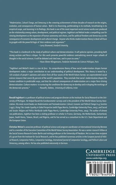 Part I. The Forces Shaping Value Change: 1. A revised theory of modernization 2. Value change and the persistence of cultural traditions 3. Exploring the unknown: predicting mass responses 4. Intergenerational value change 5. Value changes over time 6. Individualism, self-expression, and civic virtues Part II. Consequences of Value Change: 7. The causal link between democratic values and democratic institutions: theoretical discussion 8. The causal link between democratic values and democratic institutions: empirical analyses 9. Social forces, collective action, and international events 10. Individual level values and system level democracy: the problem of cross-level analysis 11. Elements of a pro-democratic civic culture 12. Gender equality, emancipative values, and democracy 13. The Implications of human development Conclusion: an emancipative theory of democracy.