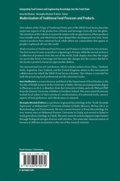Anna McElhatton is a Senior lecturer and Head of the Department of Food Studies in the Faculty of Health Sciences at the University of Malta. Anna McElhatton has an undergraduate degree in Pharmacy, an M.A. in Bioethics from the University of Malta and, M.Phil and PhD from the Queen's University of Belfast in Northern Ireland. Her main research interests include food safety (of dairy products), modernization of traditional foods, sensory aspects of food preference, and ethical issues in research. Mustapha Missbah El Idrissi is Professor of general Microbiology at the "Ecole Normale Supérieure" at Mohammed V University of Rabat (UM5R), Morocco. He is responsible of the Master degree "Biotechnology and Environment". He was a senior lecturer of Food Microbiology for over twenty years at Mohamed Premier University in Oujda and moved to Rabat to teach general microbiology at UM5R. His main research include legumes improvement through biological nitrogen fixation with rhizobia. The molecular characterization of bacteria in different ecosystems is also one of his research interests. About the Series Editor Kristberg Kristbergsson is Professor of Food Science at the Department of Food Science and Nutrition at the University of Iceland. Dr. Kristbergsson has a BS in Food Science from the Department of Chemistry at the University of Iceland and earned his MS, M. Phil and PhD in Food Science from Rutgers University. His research interests include physicochemical properties of foods, new processing methods for sea foods, modernization of traditional food processes, safety and environmental aspects of food processing, extrusion cooking, shelf-life and packaging, biopolymers in foods and delivery systems for bioactive compounds.