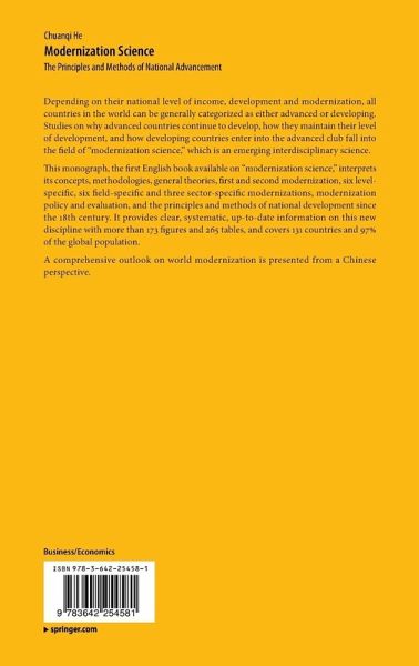 This monograph, the first English book available on "modernization science," interprets its concepts, methodologies, general theories, first and second modernization, six level-specific, six field-specific and three sector-specific modernizations, modernization policy and evaluation, and the principles and methods of national development since the 18th century. It provides clear, systematic, up-to-date information on this new discipline with more than 173 figures and 265 tables, and covers 131 countries and 97% of the global population.