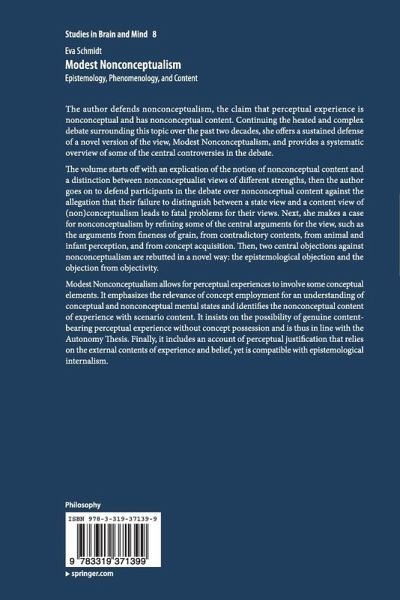 An explication of the notion of nonconceptual content and a distinction between nonconceptualist views of different strengths starts off the volume, then the author goes on to defend participants in the debate over nonconceptual content against the allegation that their failure to distinguish between a state view and a content view of (non)conceptualism leads to fatal problems for their views. Next, she makes a case for nonconceptualism by refining some of the central arguments for the view, such as the arguments from fineness of grain, from contradictory contents, from animal and infant perception, and from concept acquisition. Then, two central objections against nonconceptualism are rebutted in a novel way: the epistemological objection and the objection from objectivity.