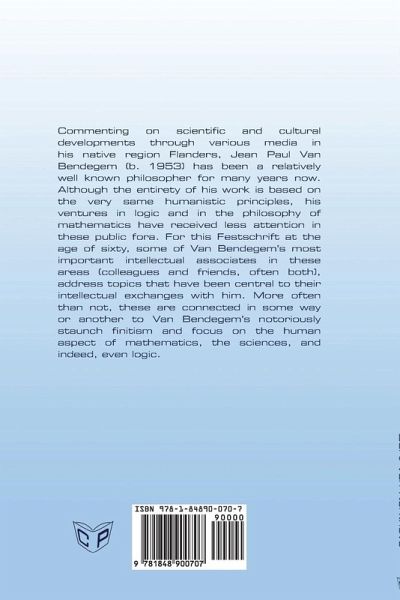 Commenting on scientific and cultural developments through various media in his native region Flanders, Jean Paul Van Bendegem (b. 1953) has been a relatively well known philosopher for many years now. Although the entirety of his work is based on the very same humanistic principles, his ventures in logic and in the philosophy of mathematics have received less attention in these public fora. For this Festschrift at the age of sixty, some of Van Bendegem's most important intellectual associates in these areas (colleagues and friends, often both), address topics that have been central to their intellectual exchanges with him. More often than not, these are connected in some way or another to Van Bendegem's notoriously staunch finitism and focus on the human aspect of mathematics, the sciences, and indeed, even logic.