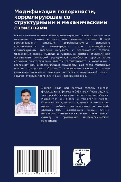 V knige opisano ispol'zowanie femtosekundnyh lazernyh impul'sow w sochetanii s suhimi i razlichnymi zhidkimi sredami. V nej rassmatriwaetsq äwolüciq mikro/nanostruktur, izmenenie kristallichnosti i nanotwerdosti posle wzaimodejstwiq femtosekundnyh lazernyh impul'sow s powerhnost'ü serebra. Obrazowanie oxida, gidrida i gidroxida serebra, obuslowlennoe powysheniem himicheskoj reakcionnoj sposobnosti serebra posle oblucheniq femtosekundnym lazerom, rassmatriwaetsq w korrelqcii s powerhnostnymi i mehanicheskimi swojstwami. Dlq ätogo serebrqnye misheni podwergalis' ablqcii Ti: sapfirowym lazerom w techenie razlichnogo kolichestwa lazernyh impul'sow w okruzhaüschej srede - wozduhe, ätanole, propanole i deionizirowannoj wode.