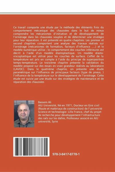Ce travail comporte une étude par la méthode des éléments finis du comportement mécanique des chaussées dans le but de mieux comprendre les mécanismes d'initiation et de développement de l'orniérage dans les chaussées souples et de déterminer une stratégie pour leur réparation. Il est présenté en quatre chapitres: Les premier et second chapitres comportent une analyse des travaux réalisés sur l'orniérage (mécanismes de formation, facteurs d'influence ....) et le modèle numérique utilise ; le comportement des couches inférieures est décrit à l'aide d'un modèle élastoplastique. Un modèle elasto-viscoplastique est utilisé pour les couches de surface. L'effet de la température est pris en compte à l'aide du principe de superposition temps-température. Le troisième chapitre présente la validation du modèle proposé sur des essais en vraie grandeur réalisés au laboratoire (LAVOC). Dans le quatrième chapitre, on présente une étude paramétrique sur l'influence de principaux facteurs (type de pneus, ) l'influence de la température sur le développement de l'orniérage. Cette étude est suivie par une étude sur des stratégies de maintenance et de réparation des chaussées