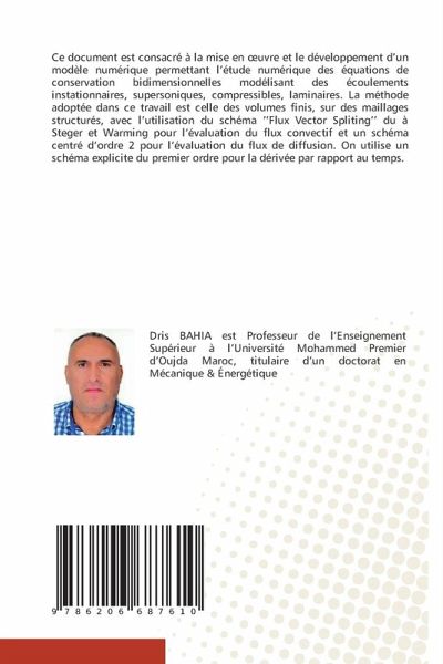 Ce document est consacré à la mise en oeuvre et le développement d'un modèle numérique permettant l'étude numérique des équations de conservation bidimensionnelles modélisant des écoulements instationnaires, supersoniques, compressibles, laminaires. La méthode adoptée dans ce travail est celle des volumes finis, sur des maillages structurés, avec l'utilisation du schéma ''Flux Vector Spliting'' du à Steger et Warming pour l'évaluation du flux convectif et un schéma centré d'ordre 2 pour l'évaluation du flux de diffusion. On utilise un schéma explicite du premier ordre pour la dérivée par rapport au temps.