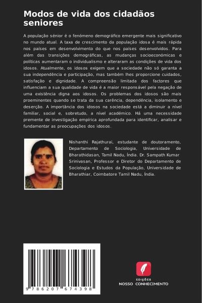 A população sénior é o fenómeno demográfico emergente mais significativo no mundo atual. A taxa de crescimento da população idosa é mais rápida nos países em desenvolvimento do que nos países desenvolvidos. Para além das transições demográficas, as mudanças socioeconómicas e políticas aumentaram o individualismo e alteraram as condições de vida dos idosos. Atualmente, os idosos exigem que a sociedade não só garanta a sua independência e participação, mas também lhes proporcione cuidados, satisfação e dignidade. A compreensão limitada dos factores que influenciam a sua qualidade de vida é a maior responsável pela negação de uma existência digna aos idosos. Os problemas dos idosos são mais proeminentes quando se trata da sua carência, dependência, isolamento e deserção. A importância dos idosos na sociedade está a diminuir a nível familiar, social e, sobretudo, a nível académico. Há uma necessidade premente de investigação empírica aprofundada para identificar, analisar e fundamentar as preocupações dos idosos.