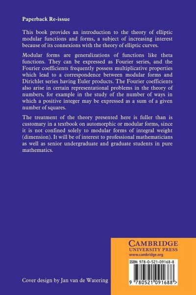 This book provides an introduction to the theory of elliptic modular functions and forms.