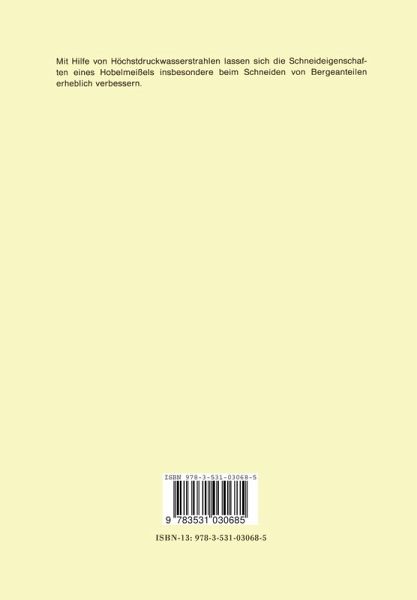 Möglichkeiten der Schnittkraftverminderung am Hobelmeißel beim Zerspanungsvorgang durch Einsatz von Höchstdruckwasserstrahlen unter besonderer Berücksichtigung der installierten Leistung