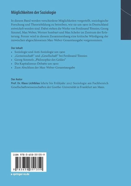 In diesem Band werden verschiedene Möglichkeiten vorgestellt, soziologische Forschung und Theoriebildung zu betreiben, wie sie um 1900 in Deutschland entwickelt worden sind. Dabei stehen die Werke von Ferdinand Tönnies, Georg Simmel, Max Weber, Werner Sombart und Max Scheler im Zentrum der Erörterung. Ferner wird in diesem Zusammenhang eine kritische Würdigung der inzwischen abgeschlossenen Max-Weber-Gesamtausgabe vorgenommen.