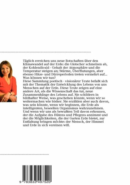 Der Klimawandel betrifft uns alle. Doch was hat er mit uns und unserem Verhalten zu tun? Diese poetisch - visionären Texte zeigen einen inneren Zusammenhang zwischen der Entwicklung der Erde und der des menschlichen Bewußtseins auf. Sie begleiten uns auf einer Reise bis hinein in die einzelne Zelle und bis hinaus in den gesamten Kosmos. Sie schildern in bildhafter und philosophischer Weise, was geschehen könnte, wenn wir so weitermachen wie bisher. Sie erzählen aber auch davon, was sein könnte, wenn wir beginnen, die Erde als intelligenten, beseelten Organismus wahrzunehmen. Und wenn wir ein bewußter Teil davon sind: der Gärtner, der die Möglichkeiten, die der Garten Erde bietet, zur Entfaltung bringen möchte. Der Mensch, der Himmel und Erde in sich vereinen möchte.