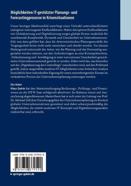 Unser heutiges Marktumfeld unterliegt einer Vielzahl unterschiedlichster endogener und exogener Einflussfaktoren. Neben disruptiven Einflussfaktoren wie Globalisierung und Digitalisierung sorgen globale Krisen zusätzlich für zunehmende Komplexität, Dynamik und Unsicherheit im Unternehmensumfeld, was dazu geführt hat, dass die deterministischen Planungsmodelle der Vergangenheit heute nicht mehr ausreichen und obsolet werden. Vor diesem Hintergrund untersucht der Autor, wie die Planung und das Forecasting ausgestaltet werden müssen, um den Anforderungen an eine Krisenprävention, -früherkennung und -bewältigung in einer von extremer Unsicherheit gezeichneten Unternehmensumwelt gerecht zu werden. Dabei wird das, was bisweilen mit der "Digitalisierung des Controllings" umschrieben wird, auf den Prüfstand gestellt, indem ausgewählte moderne IT-Möglichkeiten einer kritischen Analyse hinsichtlich ihrer individuellen Eignung für einen nutzenbringenden Einsatz im veränderten Prozess der Unternehmensplanung unterzogen werden.