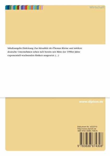 Absicht dieser Arbeit ist es, die für ein Risikomanagement in kleinen und mittleren Unternehmen notwendigen Handlungsschritte und Instrumente sowie eine Möglichkeit zu deren Umsetzung vorzustellen. Allerdings kann sie keinen Anspruch auf Vollständigkeit oder allumfassende Gültigkeit erheben. Dafür weist die Gesamtheit der deutschen Klein- und Mittelbetriebe eine zu große branchenbezogene und strukturelle Heterogenität auf. Deshalb ist das einzuführende System mit seinem Instrumentarium stets den unternehmensspezifischen Gegebenheiten gemäß aufzubauen und zu adaptieren.
