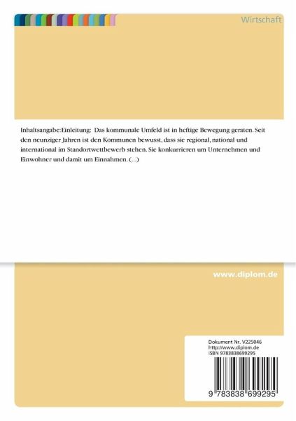 Masterarbeit aus dem Jahr 2006 im Fachbereich BWL - Sonstiges, Note: 1,1, Universität Kassel (Wirtschaftswissenschaften, Öffentliches Management), Sprache: Deutsch, Abstract: Inhaltsangabe:Einleitung: Das kommunale Umfeld ist in heftige Bewegung geraten. Seit den neunziger Jahren ist den Kommunen bewusst, dass sie regional, national und international im Standortwettbewerb stehen. Sie konkurrieren um Unternehmen und Einwohner und damit um Einnahmen. Seitdem wächst die politische Aufmerksamkeit für diejenigen Standortfaktoren, die für die Lebensqualität und Zukunftsfähigkeit einer Kommune ausschlaggebend sind: Arbeit, Schule, Bildung, Umwelt, Sicherheit, sozialer Zusammenhalt. Mit diesen Feststellungen äußerte sich Professor Banner, ehemaliger Vorstand der Kommunalen Gemeinschaftsstelle für Verwaltungsvereinfachung (KGSt), zu den grundlegenden Veränderungen des kommunalen Umfeldes. Tatsächlich lässt sich erkennen, dass sich derzeit in der Bundesrepublik Deutschland aber auch international ein Strukturwandel vollzieht; weg von bisherigen überwiegend industriell geprägten Strukturen und hin zu einer neuen Dienstleistungs- und Wissensgesellschaft.