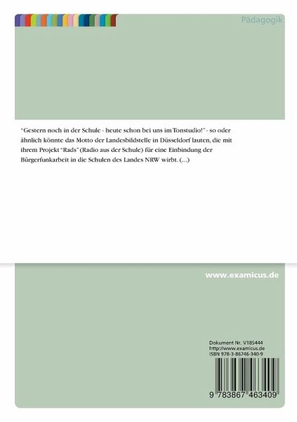 Examensarbeit aus dem Jahr 1997 im Fachbereich Pädagogik - Heilpädagogik, Sonderpädagogik, Note: 1, Universität zu Köln, Sprache: Deutsch, Abstract: "Gestern noch in der Schule - heute schon bei uns im Tonstudio!" - so oder ähnlich könnte das Motto der Landesbildstelle in Düsseldorf lauten, die mit ihrem Projekt "Rads" (Radio aus der Schule) für eine Einbindung der Bürgerfunkarbeit in die Schulen des Landes NRW wirbt. Da ich selbst auf eine langjährige Mitarbeit in einer Bürgerfunkgruppe zurückblicken kann, und seit vier Jahren lernbehinderte Schüler unterrichte, war schnell die Idee entstanden, dieses Projekt wissenschaftlich zu begleiten. Kann der lernbehinderte Schüler Radiobeiträge produzieren, die sendefähig sind? Kann er vielleicht sogar Förderung durch den Umgang mit dem Medium Radio erfahren? Diese Fragestellungen versucht die vorliegende Arbeit zu untersuchen.