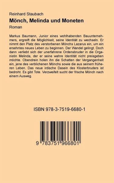 Markus Baumann, Junior eines wohlhabenden Bauunternehmers, ergreift die Möglichkeit, seine Identität zu wechseln. Er nimmt den Platz des verstorbenen Mönchs Lazarus ein, um ein ersehntes neues Leben zu beginnen. Der Wandel gelingt. Doch dann verliebt sich der unerfahrene Ordensbruder in die Organistin Melinda, der er seine wahre Identität nicht preisgeben möchte. Obendrein holen ihn die Schatten der Vergangenheit ein, jene des verblichenen Mönchs sowie die aus seinem früheren Leben. Das neue irdische Dasein des Klosterbruders ist bedroht. Es gibt Tote. Verzweifelt sucht der frische Mönch nach einem Ausweg.