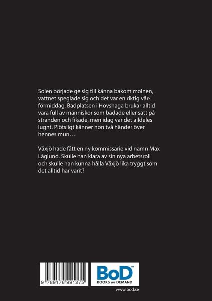 Solen började ge sig till känna där bakom molnen, vattnet låg alldeles spegelblankt och det var en riktigt underbar förmiddag. Lisa var ute och gick med sin trofasta vän, hunden Charlie på sin morgonrunda vid Helgasjön. När hon plötsligt känner händer omkring sin hals... Växjö har fått en ny kommissarie vid namn Max Låglund. Med sin stora auktoritet var han verkligen den rätta kriminalaren för lilla Växjö...