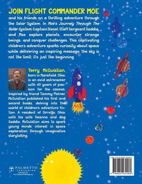 Embark on an Epic Space Adventure with Flight Commander Moe and Friends! Prepare for a cosmic escapade like no other in Moe's Journey Through The Solar System! Terry McQuistion invites young readers aged 7-11, both boys and girls, to strap in for an interstellar journey filled with thrills, laughs, and astronomical wonders. In this riveting children's adventure, Flight Commander Moe takes the helm alongside the fearless Captain Diesel and the lovable Staff Sergeant Saddie. Together, they rocket through the Solar System, visiting each planet to unravel its mysteries. The vivid descriptions and captivating narrative make learning about the cosmos an exciting and unforgettable experience. As Moe and his crew traverse the vastness of space, they navigate cosmic challenges and unlock the secrets of our celestial neighbors. The blend of fiction and scientific facts not only sparks the imagination but also fosters a love for space exploration. Moe's Journey Through The Solar System isn't just a book; it's an invitation to explore the unknown. Perfect for young adventurers and budding astronomers, this tale inspires curiosity, courage, and a sense of wonder. The characters' camaraderie and the book's educational elements make it an ideal choice for parents and educators looking to ignite a passion for learning. Get ready to blast off into a world where the sky is not the limit but the beginning of endless possibilities. Whether your child dreams of becoming an astronaut or simply loves a thrilling story, Moe's Journey Through The Solar System promises an intergalactic adventure that will leave young minds soaring.