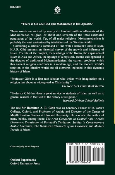 Combining a scholar's command of fact with a narrator's ease of style, the noted scholar H.A.R. Gibb presents an historic survey of Islam, from the days of the prophet, through the religion's spread in Asia and Africa, to its confrontation with the modern world.