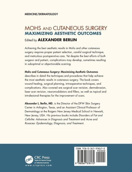Achieving the best aesthetic results in Mohs and other cutaneous surgery requires proper patient selection, careful surgical technique, and meticulous postoperative care. Yet despite the best efforts, suboptimal scarring may occur. The book describes in detail the techniques and procedures that help achieve the most aesthetic results in cutaneous surgery. It covers pre-operative planning, intraoperative techniques, and complications. Also covered are surgical scar revision, dermabrasion, laser scar revision, neuromodulators and fillers, as well as topical and intralesional therapies for the improvement of scars.