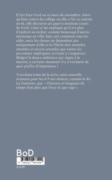 Il fait bien froid en ce mois de novembre. Alors qu'Inès rentre du collège où elle a fait sa rentrée en 6è, elle découvre un pauvre moineau transi de froid. Celui-ci lui explique qu'il n'a plus d'endroit où nicher, comme beaucoup d'autres moineaux en ville. Inès sait comment tous les aider, mais les choses ne dépendent pas uniquement d'elle et la fillette doit attendre, attendre et encore attendre que toutes les personnes impliquées arrivent à s'organiser. Malgré la douce ambiance qui règne à la maison, à certains moments il y a vraiment de quoi piaffer d'impatience !