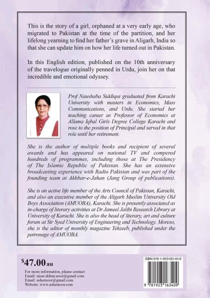 This is the story of a girl, orphaned at a very early age, who migrated to Pakistan at the time of the partition, and her lifelong yearning to find her father's grave in Aligarh, India so that she can update him on how her life turned out in Pakistan. In this English edition, published on the 10th anniversary of the travelogue originally penned in Urdu, join her on that incredible and emotional odyssey.