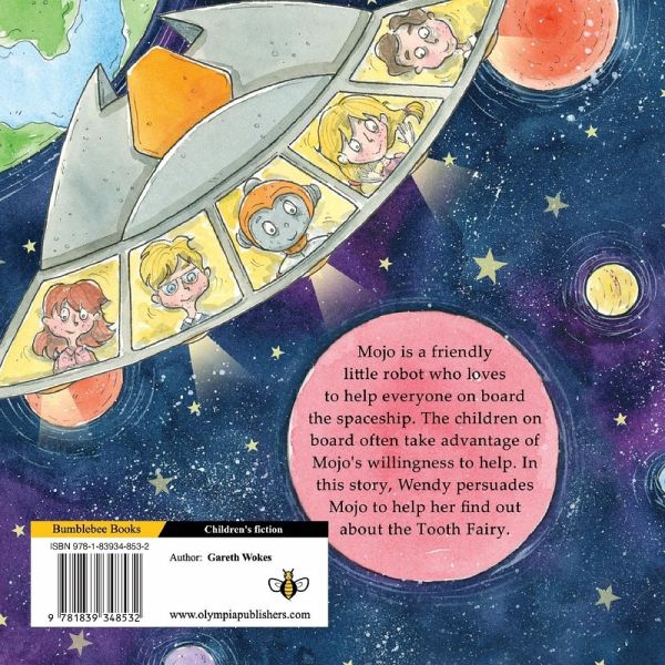 Mojo is a friendly little robot who loves to help everyone on board the spaceship. The children on board often take advantage of Mojo's willingness to help. In this story, Wendy persuades Mojo to help her find out about the Tooth Fairy.