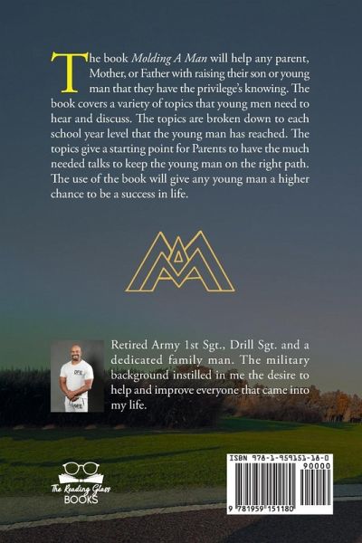 Book Synopsis:The book Molding A Man will help any parent, Mother, or Father with raising their son or young man that they have the privilege's knowing. The book covers a variety of topics that young men need to hear and discuss. The topics are broken down to each school year level that the young man has reached. The topics give a starting point for Parents to have the much needed talks to keep the young man on the right path. The use of the book will give any young man a higher chance to be a success in life. Author Description:Retired Army 1st Sgt., Drill Sgt. and a dedicated family man. The military background instilled in me the desire to help and improve everyone that came into my life.
