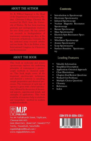 This book on molecular and atomic spectroscopyexplores the underlying principles ofcontemporar y spectroscopic methods inchemical analysis. This book amply covers all theimportant spectroscopic techniques and chemistryrelevant to sampling, samplepreparation and chemical processes. Thetreatment of each type of spectra is given with abrief introduction, followed by discussion oftheoretical aspects, experimental details andexamples of applications. This book would be ofimmense help to students and researchersinvolved in modern analytical methods.