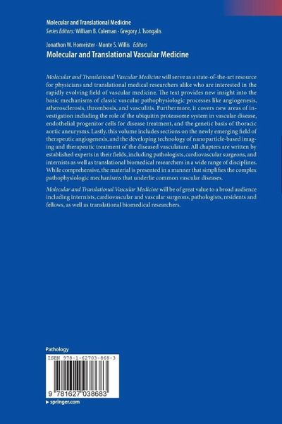Molecular and Translational Vascular Medicine will be of great value to a broad audience including internists, cardiovascular and vascular surgeons, pathologists, residents and fellows, as well as translational biomedical researchers.
