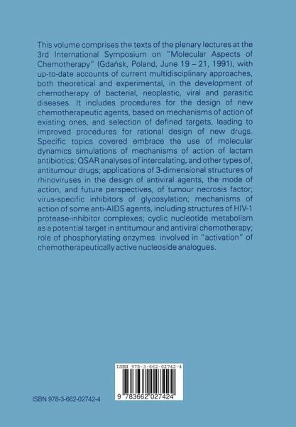 While serendipity and random screening continue to fulfil a significant role in the search for new drugs, current remarkable advances in molecular biology and genetics are dictating to a profound extent the approaches employed in their development. Increasing attention is being devoted to investigations of the mechanisms of action of existing drugs, and the sources of undesired side effects, at the molecular level. The information so derived is now extensively applied, with the aid of broad inter disciplinary approaches, both theoretical and experimental, to improvements in existing drugs, and the rational design of new ones. The foregoing comprised the subject matter of the 3rd Inter national Symposium on "Molecular Aspects of Chemotherapy", under the auspices of the International Society of Chemotherapy, and organized by the Committee on Drug Research, Polish Academy of Sciences, and the Department of Biotechnology and Biochemistry, Technical University of Gdansk. This volume includes the texts of the review lectures presented by invited participants on up-to-date achievements, and future perspectives, in molecular mechanisms of inhibition of cellular functions and metabolism, with emphasis on the design and mechanisms of action of chemotherapeutic agents for treatment of bacterial, neoplastic, viral and parasitic diseases. From the Contents, it will be seen that the range of disciplines represented was a broad one, including theoretical and experimental chemists, physicists, molecular biologists, biochemists, enzymologists, virologists, tumour biologists. Plenary sessions were supple mented by several poster sessions.