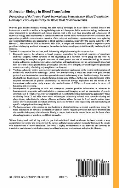 The subject of the 24th Symposium was Molecular Biology in Blood Transfusion and it was chaired by Dr. Harvey G. Klein, National Institutes of Health, USA. In this book of proceedings an extraordinary range of subjects is covered, including diagnostic aspects, virology, quality control, cell and protein processing as well as a section on new horizons in clinical medicine.