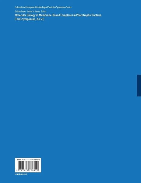 Cells of phototrophic bacterla are fitted out with a characteristic and sometimes species-specific membrane-system: the continuous but differ ently composed cytoplasmic-intracytoplasmic membrane systems in purple bacteria, the cytoplasmic membrane with the attached light-harvesting chlorosomes in green bacteria and the intracytpplasmic thylakoids with the attached light-harvesting phycobilisomes in cyanobacteria. During the long-lasting evolutionary process phototrophic bacteria have been adapted to numerous ecological niches and on this way they have developed various types of light-harvesting antenna systems and pigments. The evolutionary pressure on the development of efficient energy-transducing systems resulted, on the other hand, in hOmologous structures with a high similarity of primary amino-acid sequences of membrane-bound pigment-binding polypeptides and very similar principles of organization, realized, for example, in the photochemical reaction center and the ubiquinone-cytochrome blc oxidoreductase of many evolutionary remote organisms. l The bacterial photosynthetic and respiratory apparatuses are much simpler in composition and organization than the corresponding structures of higher organisms. They are, therefore, excellent model systems to study correlations between structure and function and assembly of these highly organized membrane particles. Biophysicists, biochemists and molecular biologists have in close cooperation, but using different methodical approaches, reached a clear progress in this field. From the 150 contributions to the Symposium on molecular biology of membrane-bound complexes in phototrophic bacteria (Freiburg, August 2-5, 1989) 56 representative papers have been selected and combined in this volume.