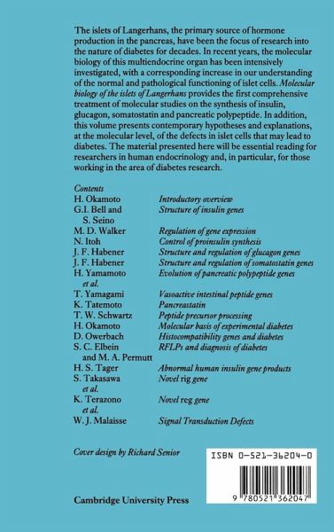 The islets of Langerhans, the primary source of hormone production in the pancreas, have been the focus of research into the nature of diabetes for decades. In recent years, the molecular biology of this multiendocrine organ has been intensively investigated, with a corresponding increase in our understanding of the normal and pathological functioning of islet cells. Molecular biology of the islets of Langerhans provides the first comprehensive treatment of molecular studies on the synthesis of insulin, glucagon, somatostatin and pancreatic polypeptide. In addition, this volume presents contemporary hypotheses and explanations, at the molecular level, of the defects in islet cells that may lead to diabetes. The material presented here will be essential reading for researchers in human endocrinology and, in particular, for those working in the area of diabetes research.