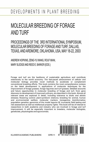 Proceedings of the 3rd International Symposium, Molecular Breeding of Forage and Turf, Dallas, Texas, and Ardmore, Oklahoma, U.S.A., May, 18-22, 2003 Herausgegeben:Hopkins, Andrew; Wang, Zeng-Yu; Mian, Rouf; Sledge, Mary; Barker, Reed E.