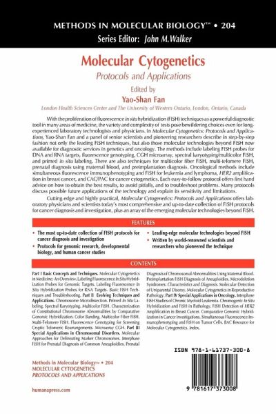 "Dr. Fan has done a marvelous job of putting together a collection of laboratory protocols and review articles of different FISH technologies. The authors of the different chapters not only gave detailed, easy-to-follow protocols, but also provided their first-hand experiences of troubleshooting. Molecular Cytogenetics: Protocols and Applications is packed with information on cutting-edge FISH technologies and their applications, limitations, and pitfalls, along with detailed laboratory protocols. I would certainly recommend that this book be included in the libraries of cytogeneticists and cytogenetic laboratories." -The American Society of Human Genetics