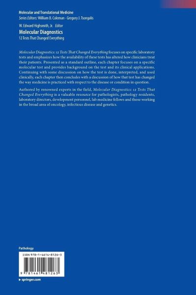 Molecular Diagnostics: 12 Tests That Changed Everything focuses on specific laboratory tests and emphasizes how the availability of these tests has altered how clinicians treat their patients. Presented as a standard outline, each chapter focuses on a specific molecular test and provides background on the test and its clinical applications. Continuing with some discussion on how the test is done, interpreted, and used clinically, each chapter then concludes with a discussion of how that test has changed the way medicine is practiced with respect to the disease or condition in question.