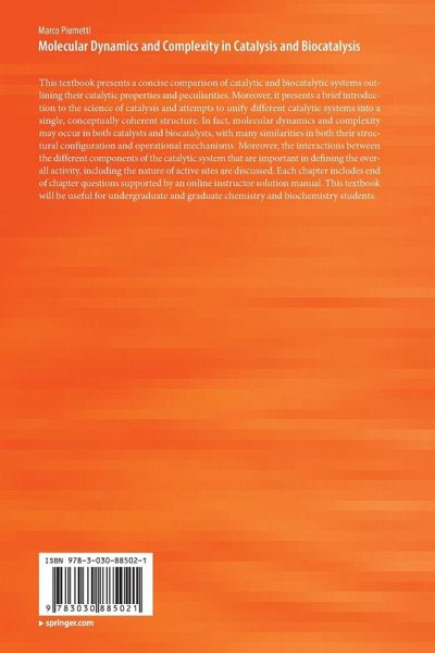 This textbook presents a concise comparison of catalytic and biocatalytic systems outlining their catalytic properties and peculiarities. Moreover, it presents a brief introduction to the science of catalysis and attempts to unify different catalytic systems into a single, conceptually coherent structure. In fact, molecular dynamics and complexity may occur in both catalysts and biocatalysts, with many similarities in both their structural configuration and operational mechanisms. Moreover, the interactions between the different components of the catalytic system that are important in defining the overall activity, including the nature of active sites are discussed. Each chapter includes end of chapter questions supported by an online instructor solution manual. This textbook will be useful for undergraduate and graduate chemistry and biochemistry students.