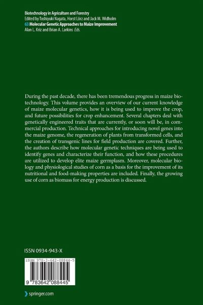 During the past decade, there has been tremendous progress in maize biotechnology. This volume provides an overview of our current knowledge of maize molecular genetics, how it is being used to improve the crop, and future possibilities for crop enhancement. Several chapters deal with genetically engineered traits that are currently, or soon will be, in commercial production. Technical approaches for introducing novel genes into the maize genome, the regeneration of plants from transformed cells, and the creation of transgenic lines for field production are covered. Further, the authors describe how molecular genetic techniques are being used to identify genes and characterize their function, and how these procedures are utilized to develop elite maize germplasm. Moreover, molecular biology and physiological studies of corn as a basis for the improvement of its nutritional and food-making properties are included. Finally, the growing use of corn as biomass for energy production is discussed.