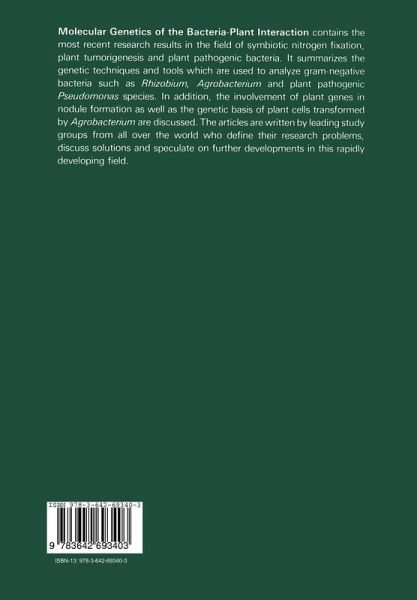 A. General Introduction.- The Historical Background of the Bacteria-Plant Interaction.- The Rhizobium-Plant Interaction.- La Piste des Opines.- B. The Rhizobium-Plant Interaction.- I. The Rhizobium meliloti-Medicago sativa System.- Studies on Rhizobium meliloti Plasmids and on Their Role in the Control of Nodule Formation and Nitrogen Fixation: The pSym Megaplasmids and the Other Large Plasmids.- Studies on Rhizobium meliloti Plasmids and on Their Role in the Control of Nodule Formation and Nitrogen Fixation: A Strategy for Region-Specific Transposon Mutagenesis of pSym Megaplasmid.- Analysis of Symbiotic Nitrogen Fixation Genes Carried by the Rhizobium meliloti Mega-Plasmid.- Characterization of Rhizobium meliloti Genetic Loci Essential for Symbiotic Nitrogen Fixation.- Mapping and Regulation of the Structural Genes nifK, nifD, and nifH of Rhizobium meliloti.- Early Nodulation Genes of Rhizobium meliloti.- Symbiotic Nitrogen Fixation Genes of Rhizobium meliloti.- Vector Plasmids for in-Vivo and in-Vitro Manipulations of Gram-Negative Bacteria.- II. The Rhizobium leguminosarum-Pisum sativum System.- Genetic Analysis of pRL1 JI, a Symbiotic Plasmid of Rhizobium leguminosarum.- Natural Variation in Rhizobium Plasmids.- Analysis of Nodule-Specific Plant and Bacteroid Proteins in Pea Plants Inoculated by Transposon Mutagenized Rhizobium leguminosarum.- III. The Rhizobium japonicum-Glycine max System.- Rhizobia Use Free-Living N2 Fixation to Promote Growth by a Mechanism of Crossfeeding.- The Nitrogenase Genes of Rhizobium japonicum.- The Structure and Organization of the Soybean Leghemoglobin Genes.- The Role of Plant Genes in Soybean-Rhizobium Interactions.- IV. The Interaction of Different Rhizobium Species with Plants.- General Organization of Nitrogen Fixation Genes inRhizobium phaseoli.- Identification of Nitrogen Fixation and Nodulation Genes on a Large Plasmid from a Broad Host Range Rhizobium sp..- Identification, Broad Host Range Mobilization and Mutagenesis of a Rhizobium trifolii Sym::R68.45 Cointegrate Plasmid.- Genetic Analysis of the Symbiotic Regions in Rhizobium trifolii and Rhizobium parasponia.- Molecular Anatomy of the Symbiotic Region in Rhizobium trifolii and Rhizobium parasponia.- Stem Nodulation in Aeschynomene: A Model System for Bacterium-Plant Interactions.- C. The Agrobacterium-Plant Interaction.- I. The Tumor-Inducing Plasmids of Agrobacterium.- Onc- and vir-Genes Located on the Ti-Plasmid of Agrobacterium tumefaciens.- Plasmid Genes Essential for the Interactions of Agrobacteria and Rhizobia with Plant Cells.- Genetic Analysis of Host Range Expression by Agrobacterium.- The Biology of Genetic Transformation of Higher Plants by Agrobacterium rhizogenes.- Expression of the T-Region of Octopine Plasmid pTi Ach5 into Protein in Bacterial Systems.- II. The Role of T-DNA in Transformed Plant Cells.- Liposomes as a Carrier of Ti Plasmid into Protoplasts.- Plant Protoplast Transformation by Agrobacterium tumefaciens and its Ti Plasmid DNA.- The Study of Integration of Tumor-Inducing DNA from the Nopaline Ti Plasmid of Agrobacterium tumefaciens.- Transcription of the Ti-Plasmid in Crown Gall Tumors.- TR Genes Involved in Agropine Production.- Transcription of T-DNA in Octopine and Nopaline Crown Gall Tumours.- Genetic Analysis of T-DNA and Regeneration of Transformed Plants.- D. Plant Pathogenic Bacteria and Related Aspects.- The Genetics of the Cherry Pathogen, Pseudomonas syringae pathovar morsprunorum.- Towards the Genetical Analysis of Pathogenicity of Xanthomonas campestris.- Molecular Analysis of Virulence Genesin Pseudomonas solanacearum.- Cloning of Genes Involved in Bacterial Ice Nucleation and Fluorescent Pigment/Siderophore Production.- The Genetics of Indoleacetic Acid Production and Virulence in Pseudomonas savastanoi.- Azospirillum Genetics.- Genome Rearrangement of the Rhizobiaceae.