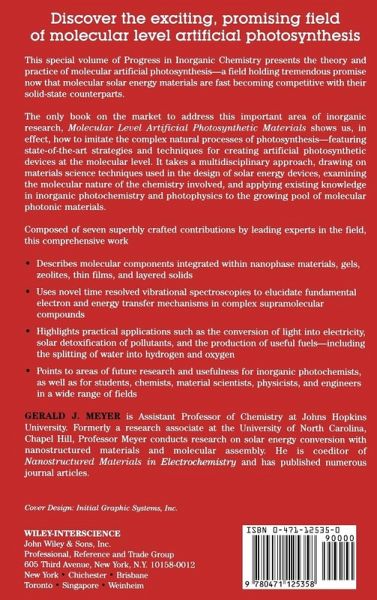 The only book on the market to address this important area of inorganic research, Molecular Level Artificial Photosynthetic Materials shows us, in effect, how to imitate the complex natural processes of photosynthesis-featuring state-of-the-art strategies and techniques for creating artificial photosynthetic devices at the molecular level. It takes a multidisciplinary approach, drawing on materials science techniques used in the design of solar energy devices, examining the molecular nature of the chemistry involved, and applying existing knowledge in inorganic photochemistry and photophysics to the growing pool of molecular photonic materials.