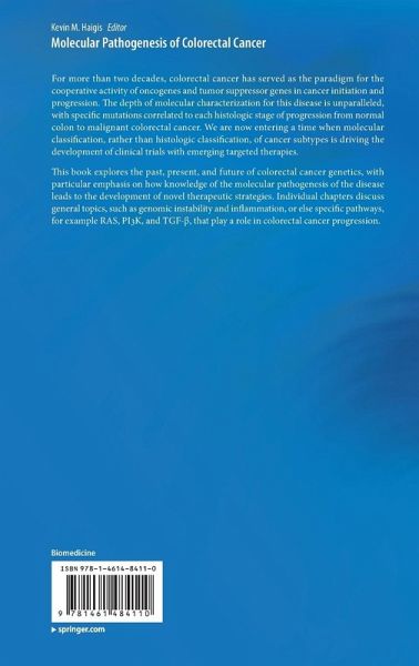 Colorectal cancer has for more than two decades served as the paradigm for the multi-step concept of cancer initiation and progression. Perhaps more than any other organ site, cancer of the colon is extensively characterized at the molecular level. We are now entering a time when molecular classification, rather than histologic classification, of cancer subtypes is driving the development of clinical trials with emerging targeted therapies. The book will focus on the progression from the identification of mutations that drive colorectal cancer initiation and progression to the search for novel therapies to treat the disease.