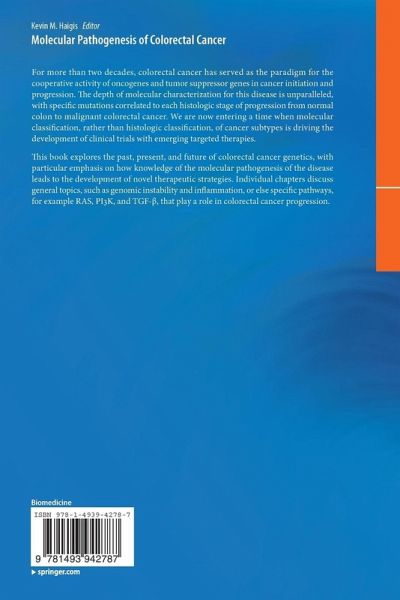 Colorectal cancer has for more than two decades served as the paradigm for the multi-step concept of cancer initiation and progression. Perhaps more than any other organ site, cancer of the colon is extensively characterized at the molecular level. We are now entering a time when molecular classification, rather than histologic classification, of cancer subtypes is driving the development of clinical trials with emerging targeted therapies. The book will focus on the progression from the identification of mutations that drive colorectal cancer initiation and progression to the search for novel therapies to treat the disease.
