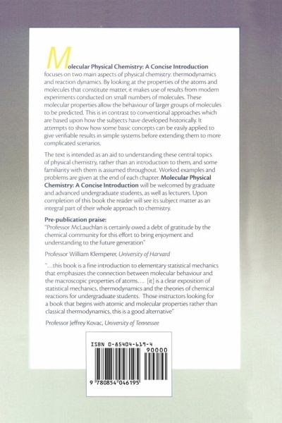Molecular Physical Chemistry: A Concise Introduction focuses on two main aspects of physical chemistry: thermodynamics and reaction dynamics. By looking at the properties of the atoms and molecules that constitute matter, it makes use of results from modern experiments conducted on small numbers of molecules. These molecular properties allow the behaviour of larger groups of molecules to be predicted. This is in contrast to conventional approaches which are based upon how the subjects have developed historically. It attempts to show how some basic concepts can be easily applied to give verifiable results in simple systems before extending them to more complicated scenarios. The text is intended as an aid to understanding these central topics of physical chemistry, rather than an introduction to them, and some familiarity with them is assumed throughout. Worked examples and problems are given at the end of each chapter. Molecular Physical Chemistry: A Concise Introduction will be welcomed by graduate and advanced undergraduate students, as well as lecturers. Upon completion of this book the reader will see its subject matter as an integral part of their whole approach to chemistry. TOC:Some Basic Ideas and Examples.- Partition Functions.- Thermodynamics.- Applications.- Reactions.- Answers to Problems.- Some Useful Constants and Relations.- Subject Index.