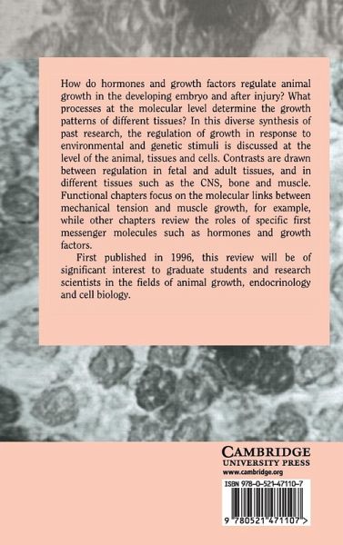 How do hormones and growth factors regulate animal growth in the developing embryo and after injury? What processes at the molecular level determine the growth patterns of different tissues? In this diverse synthesis of recent research, the regulation of growth in response to environmental and genetic stimuli is discussed at the level of the animal, tissues and cells. Contrasts are drawn between regulation in fetal and adult tissues, and in different tissues such as the CNS, bone and muscle. Functional chapters focus on the molecular links between mechanical tension and muscle growth, for example, while other chapters review the roles of specific molecules such as hormones and growth factors. This state of the art review will be of significant interest to graduate students and research scientists in the fields of animal growth, endocrinology and cell biology.