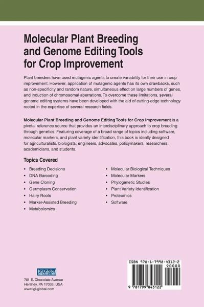 Plant breeders have used mutagenic agents to create variability for their use in crop improvement. However, application of mutagenic agents has its own drawbacks, such as non-specificity and random nature, simultaneous effect on large numbers of genes, and induction of chromosomal aberrations. To overcome these limitations, several genome editing systems have been developed with the aid of cutting-edge technology rooted in the expertise of several research fields. Molecular Plant Breeding and Genome Editing Tools for Crop Improvement is a pivotal reference source that provides an interdisciplinary approach to crop breeding through genetics. Featuring coverage of a broad range of topics including software, molecular markers, and plant variety identification, this book is ideally designed for agriculturalists, biologists, engineers, advocates, policymakers, researchers, academicians, and students.