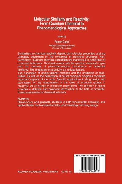 In the study of various phenomena in nature, the concept of similarity plays a fundamental role. Chemistry is no exception; the similarity of molecules, both in their physical properties and in their chemical reactions, provides a basis for their classification, characterization, and scientific description. Ultimately, the recognition and analysis of molecular similarities serve as the basis of an understanding of molecular structures and properties, and rep resent the first steps in the development of theoretical models explaining chemical behavior. In this role, molecular similarity is the foundation of predictive models in chemistry. Molecular similarity and molecular reactivity are strongly related. Studying the reactivities of molecules is an important tool for detecting molecular similarities and differences; alternatively, similar molecular properties often imply similar reactivities. This latter aspect is of special value, allowing chemists to make predictions concerning the outcomes of chemical reactions based on molecular similarities. In this book, the central theme, molecular similarity, is discussed from a variety of viewpoints covering the range from rigorous quantum chemical approaches to phenomenological observations expressed within appropriate physical and mathematical frameworks. The authors of the various chapters represent some of the most current fields of research on molecular similarity. It is the hope of the editor that by bringing these subjects together under the cover of this book will provide the readers with a broad perspective and a handy reference of the contemporary approaches to similarity analysis of molecules and reactions.