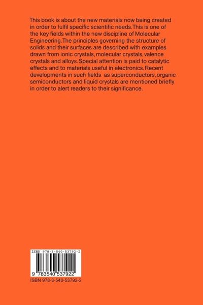 This book is about the new materials now being created in order to fulfil specific scientific needs. This is one of the key fields within the new discipline of Molecular Engineering. The principles governing the structure of solids and their surfaces are described with examples drawn from ionic crystals, molecular crystals, valence crystals and alloys. Although many of the topics are related to Solid State Physics they are here introduced from a chemical rather than a physical point of view in order to open up the subject to a wider audience. The main text tries to remain simple by exploiting fully a modest number of theoretical ideas. An important aim of the text is to bridge the gap between the average chemistry degree course and the rapidly expanding research literature of the subject.